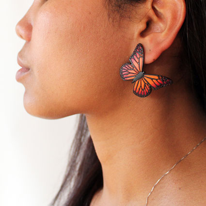 Wooden Stud Earrings Monarch Butterflies | Wholesale: $14