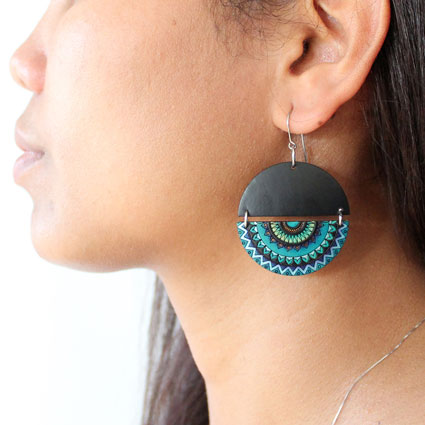 Half Circle Mandalas Wooden Earrings | Wholesale: $14