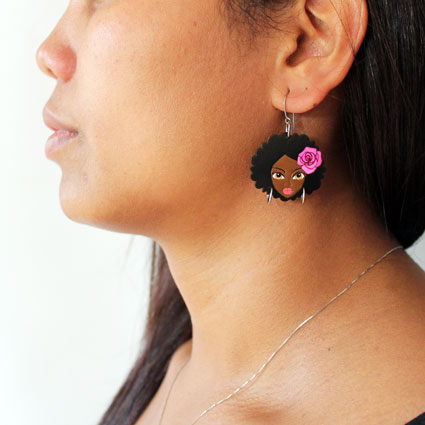 Wooden Earrings African Woman | Wholesale: $14