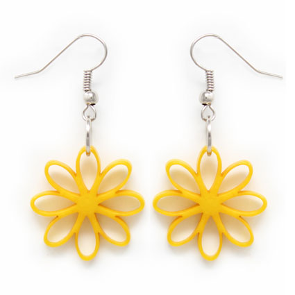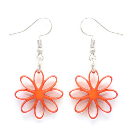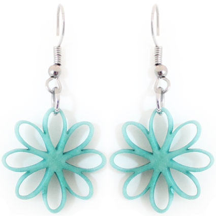 A single Tagua flower is laser-cut to perfection to make up these beautiful dangle earrings. Surgical steel findings. These tagua earrings are ethically handmade in Colombia using eco friendly dyes.