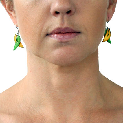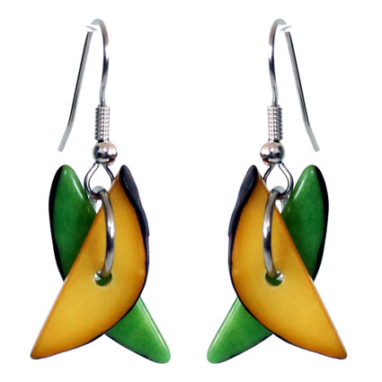 Two Tagua slivers, with skin on the edges, are grouped together in a single jump ring. Simple and naturally beautiful. Surgical steel findings. These tagua earrings are fair trade and ethically handmade in Colombia using eco friendly dyes.