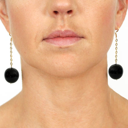 These chic dangle earrings are made up of a single tagua sphere hanging from a delicate faux gold chain. Elegant and trés chic! These tagua earrings are fair trade and ethically handmade in Colombia using eco friendly dyes.