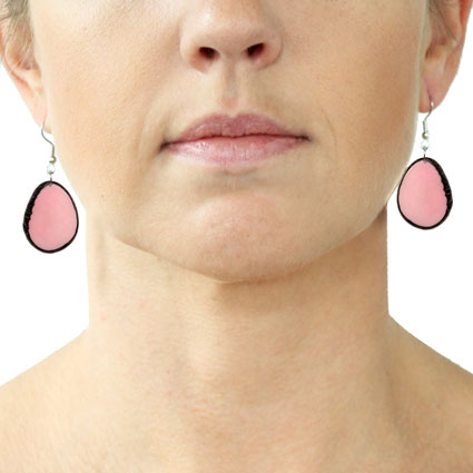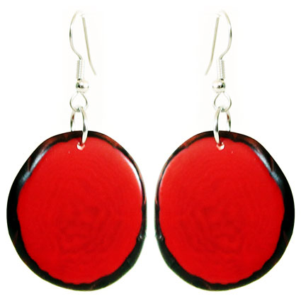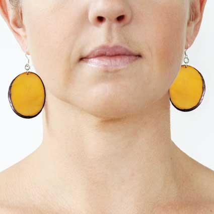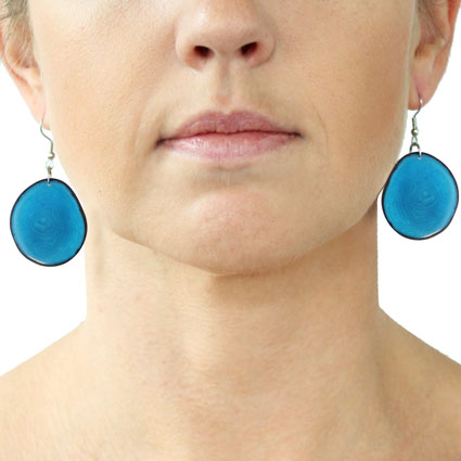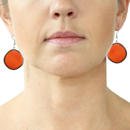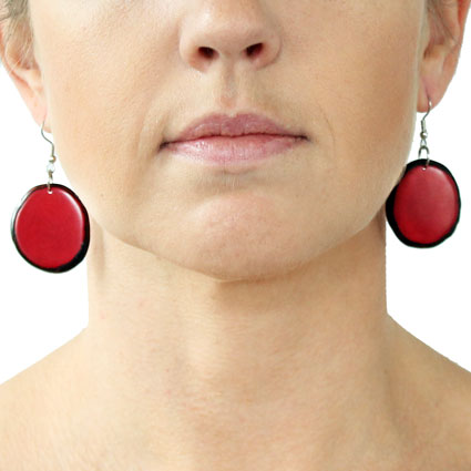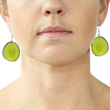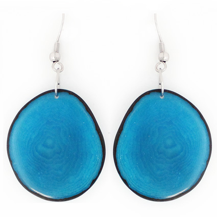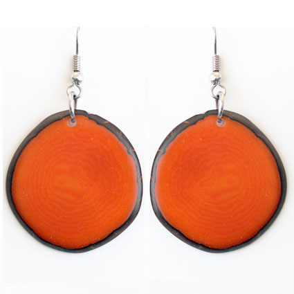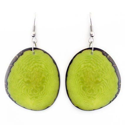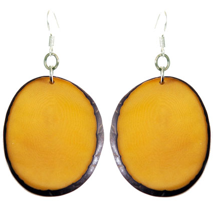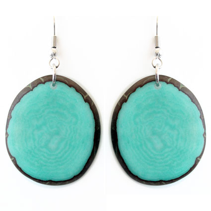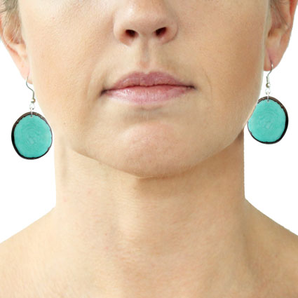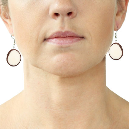 These naturally beautiful earrings are rounded Tagua chips with skin on the edges. Surgical steel findings. These tagua earrings are ethically handmade in Colombia using eco friendly dyes.