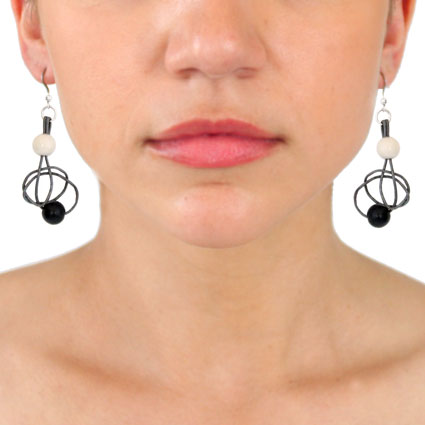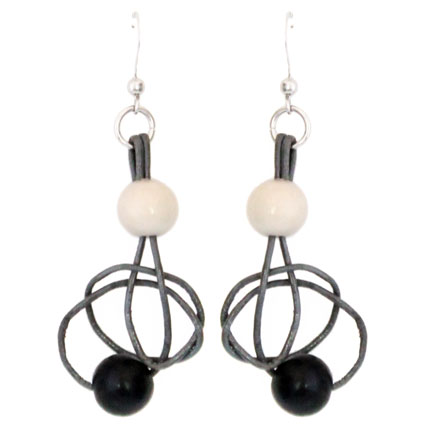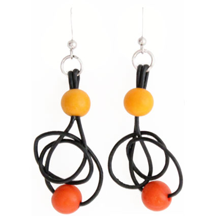 These playful earrings resemble doodles and squiggly lines: A thin cotton cord is looped and twisted between 2 Acai seeds to make up this fun design. These Acai earrings are Fair Trade and ethically handmade in Colombia using eco friendly dyes.
