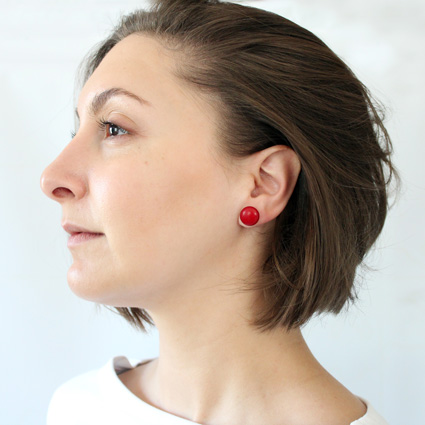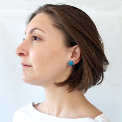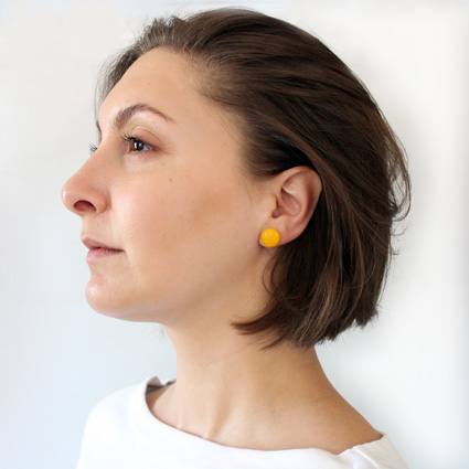 Playful round Tagua studs measuring half-inch in diameter. Surgical steel findings. These tagua studs are sustainable, organic, vegan and biodegradable: 100% vegetable ivory (Tagua seeds)
