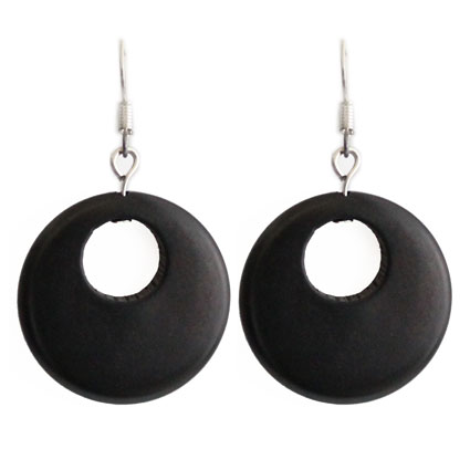 Naturally beautiful tagua coins with an inner circular hole at the top. These tagua earrings are fair trade and ethically handmade in Colombia using eco friendly dyes.