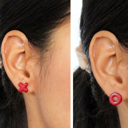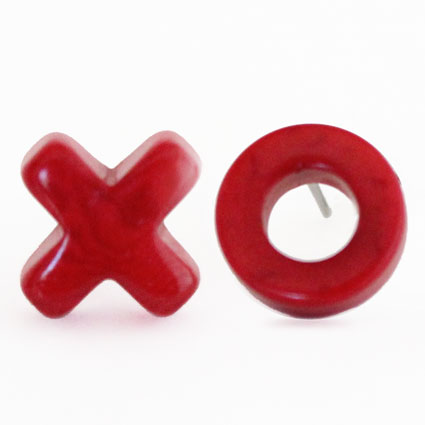 Playful X and O Tagua posts inspired in "hugs" and "kisses". These natural earrings are playful and fun, measuring aproximately 10 mm in length/diameter. Surgical steel findings. Ethically handmade in Colombia using eco friendly dyes.