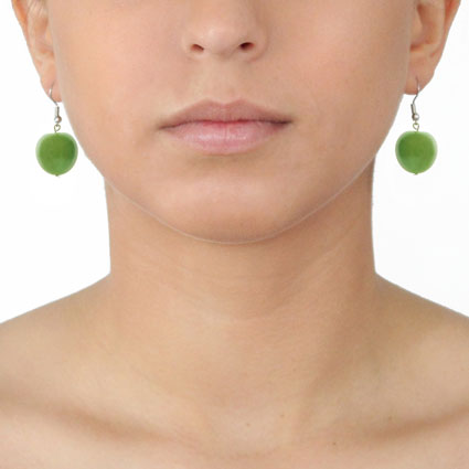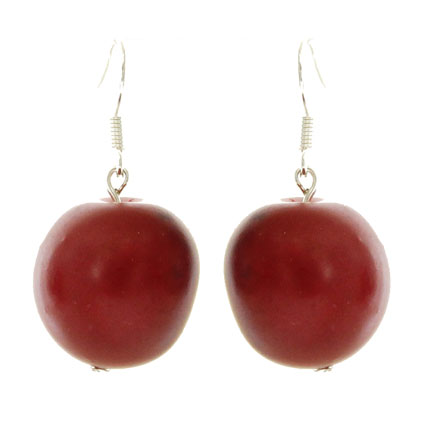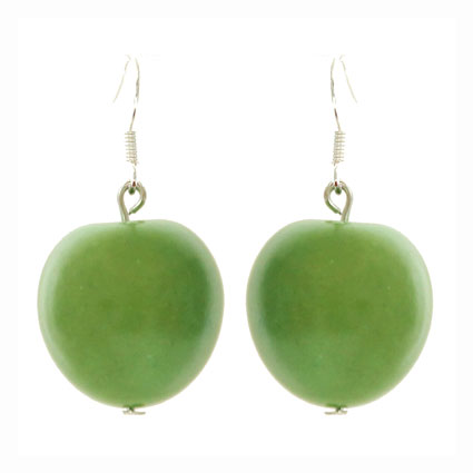 These natural earrings are small spheres of tagua shaped like apples. Playful and naturally beautiful. Surgical steel findings. These tagua earrings are fair trade, sustainable, organic and vegan, handmade in colombia using tagua seeds.
