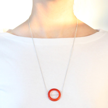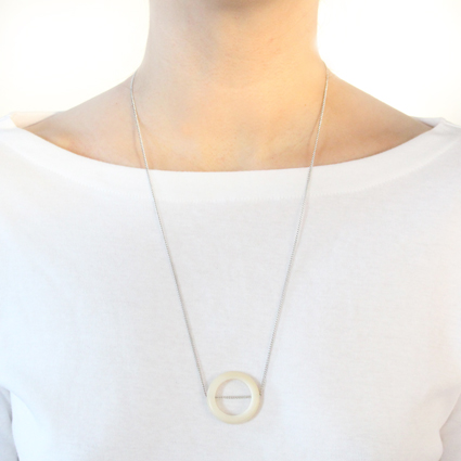 A single dried Tagua seed is sliced and laser cut to create this perfect circular shape. The circle is drilled through to insert a small steel chain. Minimal, chic and stylish. It's 24" long, closure on the back with lobster clasp. This tagua nut pendant is fair trade, handmade, sustainable, organic, vegan and biodegradable: 100% vegetable ivory (Tagua seeds).