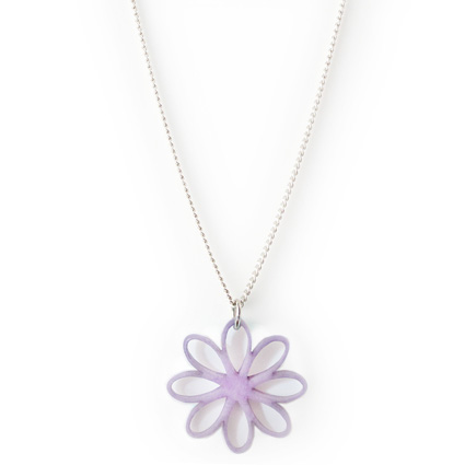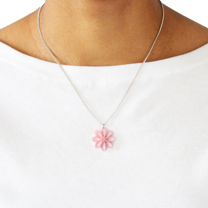 A really cute Tagua flower pendant on a steel chain (18 inches long). A single dried Tagua seed is sliced, then laser-cut to perfection to create the flower shape (hypotrochoid style). Each Tagua flower is all-natural: sustainable, organic, vegan and biodegradable. This pendant is fair trade, sustainable, organic, vegan and biodegradable: 100% vegetable ivory (Tagua seeds).