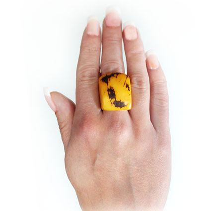 These gorgeous Fair Trade rings are chunky and naturally stunning. Each ring's face reveal streaks of rind from the tagua seed, a beautiful natural design detail.